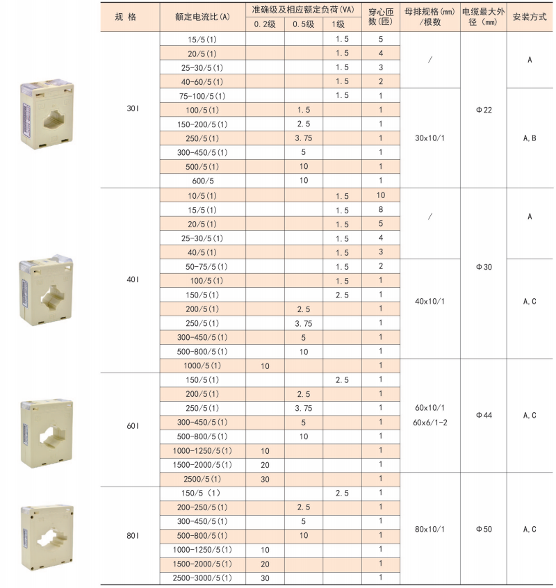 该系列互感器作为交流电流信号采集元件,可与测量仪表配套使用,一次电流测量范围5-6300A,二次输出5A或1A,测量范围为额定值的5-120%。