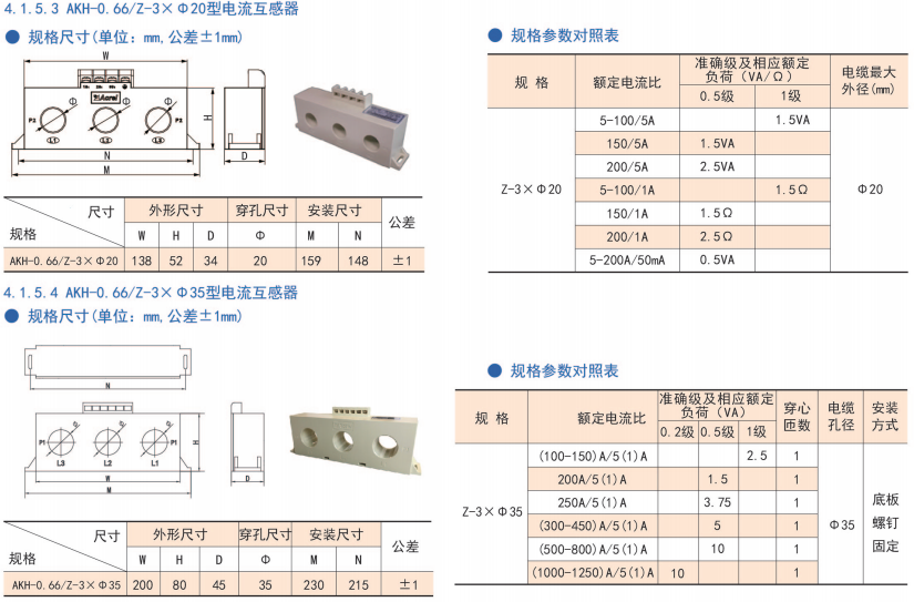 AKH-0.66 W系列电流互感器输出为5-20mA等小电流信号,与我公司生产的AMC16多回路电力仪表配套使用,产品具有体积小,精度高,带载能力强,安装方便等优点,为用户实现多回路监控节约...