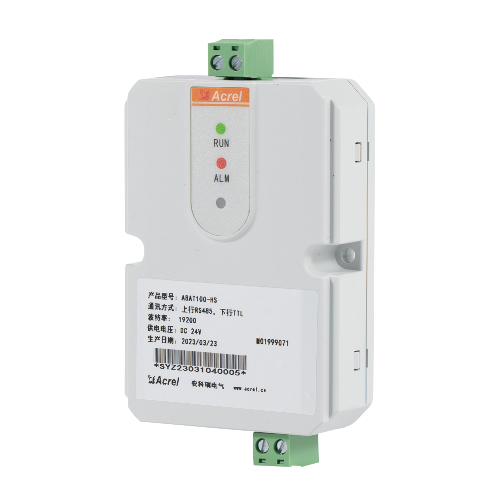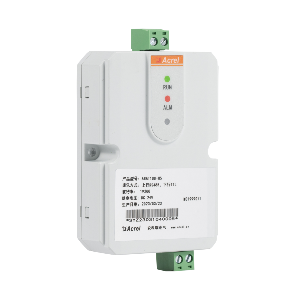 ABAT100-HS采集器模块作为一组电池组的管理模块,用于读取前端单电池监测子模块的电池监测数据,并对数据进行分析处理,可估算每节及整组电池的剩余容量。运行参数可通过搭配触摸屏直接设置,采集到的数据可直接查看。采集器模块会自动定期保存电池关键数据,并可通过RS485口给第三方监测系统,支持MODBUS协议。一个采集器模块管理一组电池,最大可管理模块数为120个。
