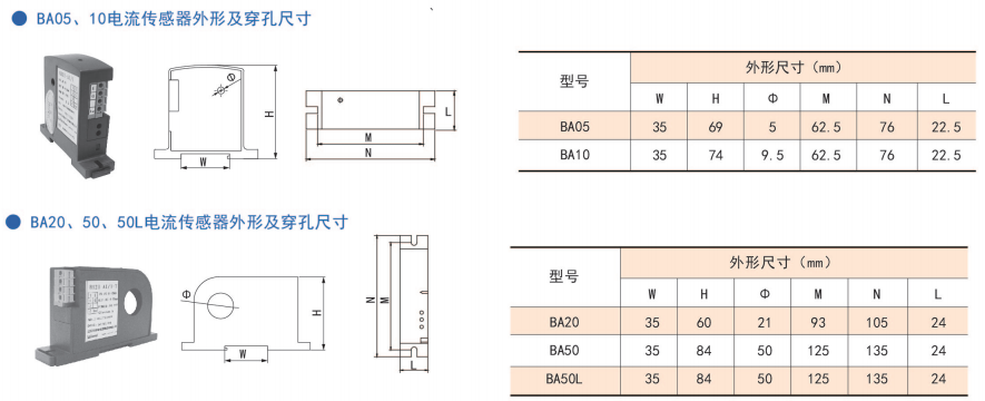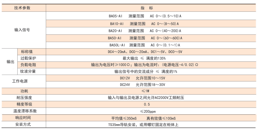 BA系列产品应用电磁感应原理,对电网中的交流电流进行实时测量,将其隔离变换为标准的直流信号输出。