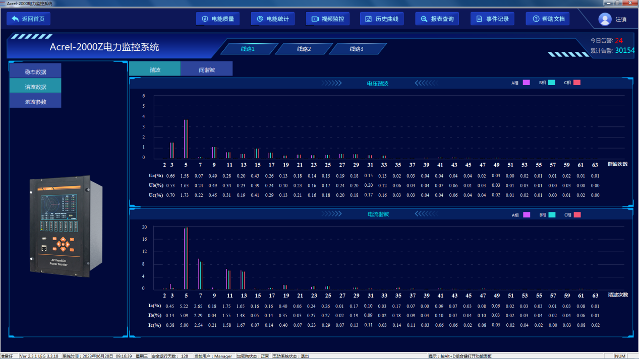实现整个微电网系统范围内的电能质量和电能可靠性状况进行持续性的监测。如电压谐波、电压闪变、电压不平衡等稳态数据和电压暂升/暂降、电压中断暂态数据进行监测分析及录波展示,并对电压、电流瞬变进行监测。