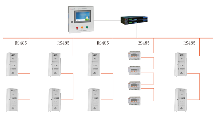 IT配电监测系统以计算机(或触摸屏)、通讯设备、测控单元为基本工具,采用现场总线进行组网,为各类场所IT配电系统的实时数据采集及远程管理与控制提供了基础平台。其层次结构如下所示: