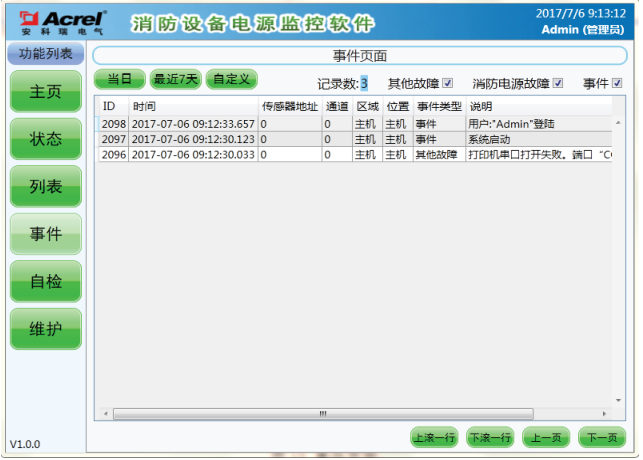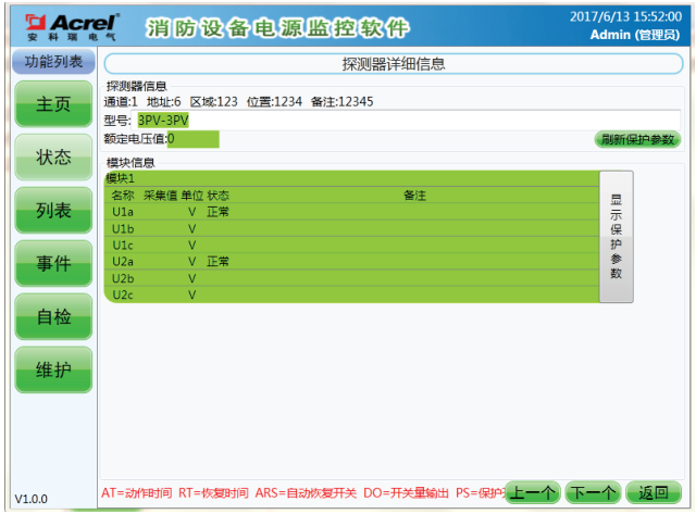 该检测功能为“管理员”和“操作员”方可进行的操作功能,主要用于设备自检和对监控系统柜体面板指示灯的手动检测。