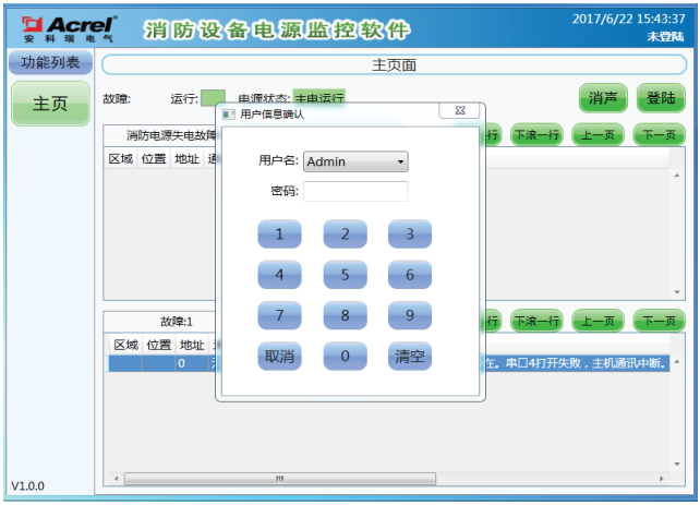 选择用户名并输入正确的密码后,系统状态栏会显示当前的登录用户。本软件针对的任意远控操作均需权限登录后方可操作,即防止无关人员误操作。