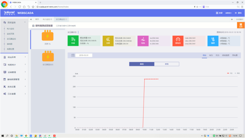 实时变压器曲线可监测变压器的状态,某天的电压、电流、功率、用电量等曲线信息。
