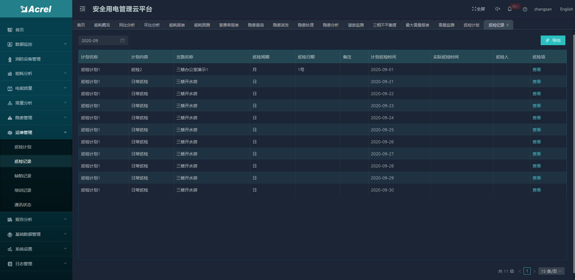 运维管理包括巡检计划、巡检记录、设备通讯状态等功能。