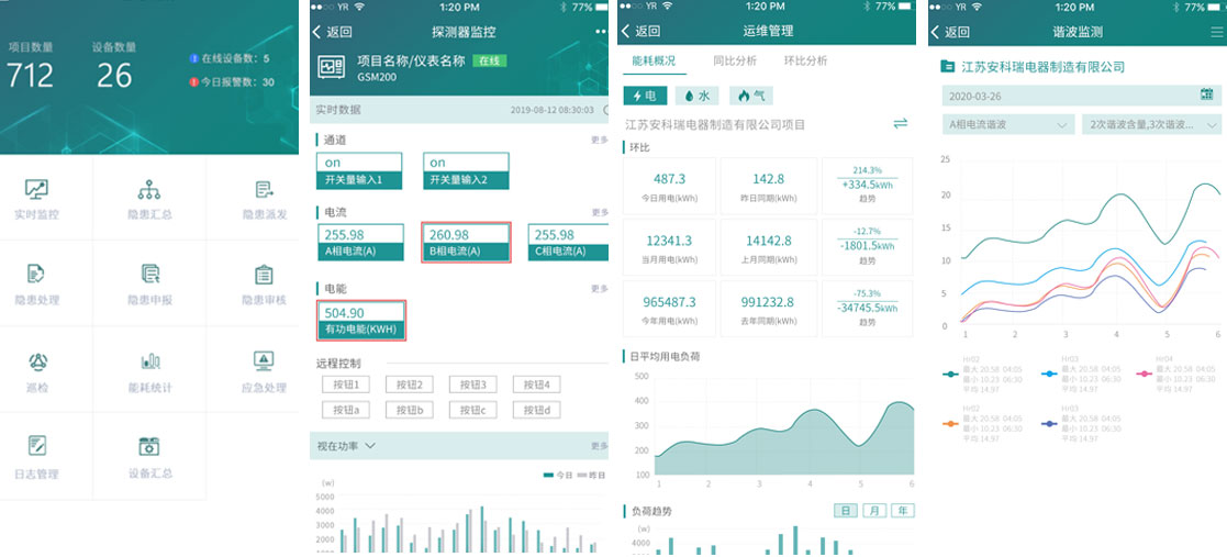 安全用电管理云平台支持Android、ios系统APP,方便用进行项目查询、报警、故障查询,实时监控数据查询,复位及控制操作,探测器详细信息查询等功能。