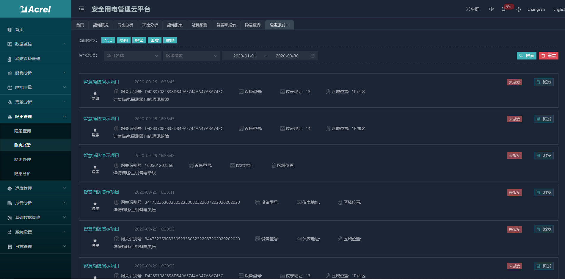 隐患派发页面显示未派发的隐患记录,如图所示。