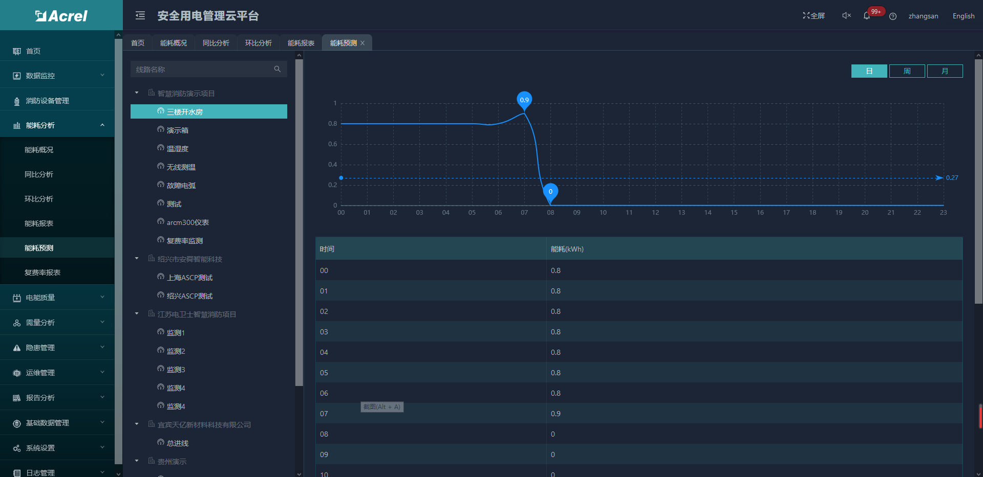 能耗预测可以逐日、逐周、逐月预测对应探测器的用能情况用电情况,如图所示。
